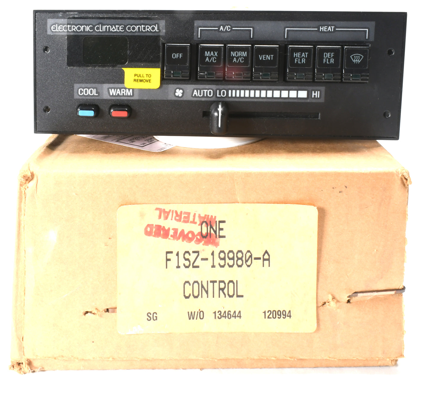 This is one brand new heating and A/C controller head control panel from Ford. The Ford service part number for this item is F1SZ-19980-A. It is correct for all 1991-1993 Thunderbird and Cougar models equipped with Automatic Temperature Control. This is a brand new part; it has never been installed on a vehicle. This is not a reproduction or copy or remanufactured part. This part ships in the original retail packaging.