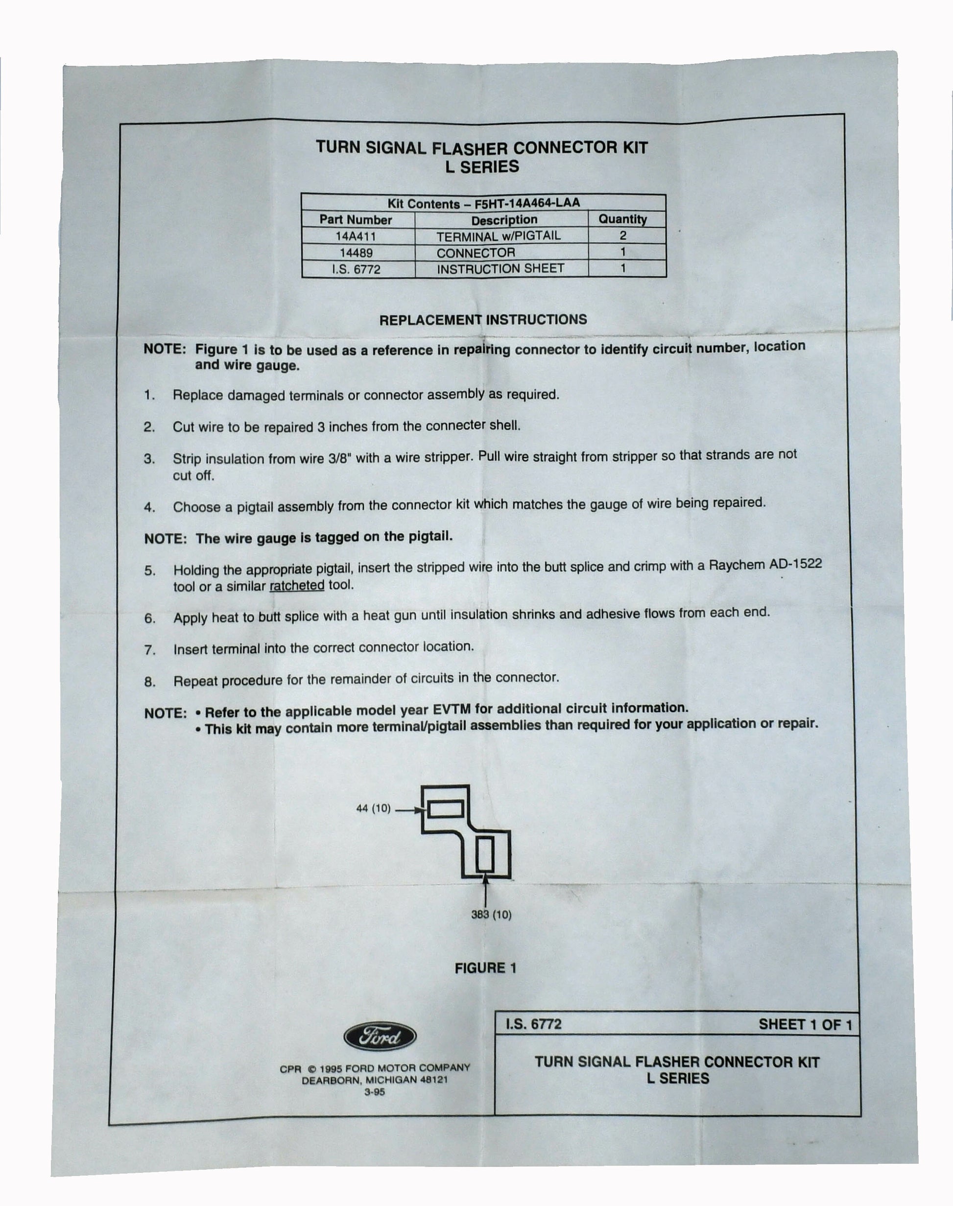 New turn signal connector repair kit for Ford L series trucks F5HZ-14A464-LA